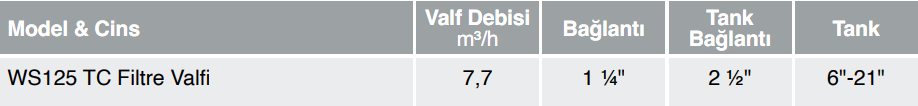 WS125 TC Filtre Valfi adet